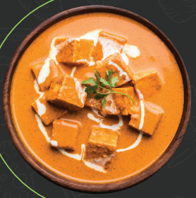 Creamy spiced curry with cottage cheese, butter, tomatoes, spices. Allergen: Milk, Nuts (Cashew).