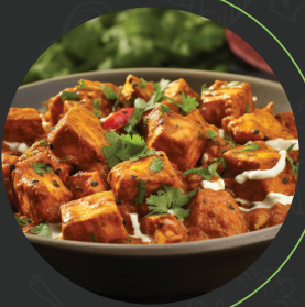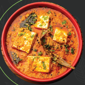 Grilled Indian Cottage Cheese in a rich, spiced tomato-based curry sauce. Allergen: Milk, Nuts (Cashew).