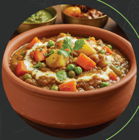 A flavorful, spicy, rich, slow-cooked mix veg curry. Allergen: Milk, Mustard.