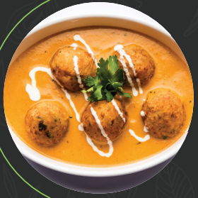 Cheese balls in creamy, spiced, flavorful tomato-based gravy. Allergen: Milk, Nuts (Cashew)