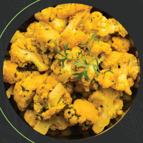 Cauliflower cooked with ginger. spices, and sautéed in cooking oil. Allergen: None specified.