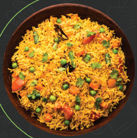 A fragrant, spiced rice dish with jackfruit for meat-free texture. Allergen: Milk, Nuts (Cashew).