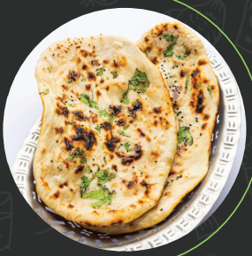 Fluffy flatbread infused with garlic baked in a tandoor Allergen: Cereal (Wheat), Milk.