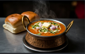 Spicy veggie curry with buttery pav a street food classic. Allergen: Cereals (Wheat), Milk.