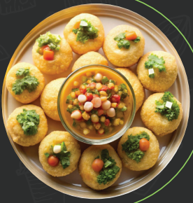 Tangy water, chutneys, spices packed in a crispy puri!. Allergen: Cereals (Wheat).