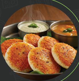 Podi-coated idlis with sambar and chutney a fiery classic! Allergen: Mustard, Nuts (Peanut).