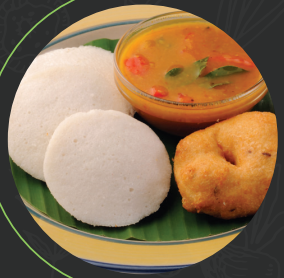 Idli, vada, sambar, and chutney the taste of South India. Allergen: Mustard. Nuts (Peanut).